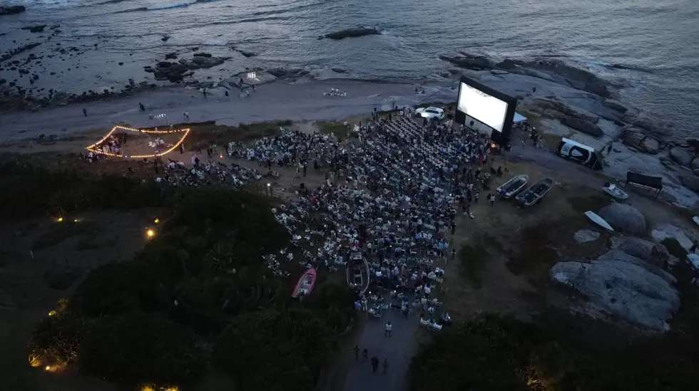 Los primeros 10 años la evolución fue lenta y constante. A partir de 2020 el festival aceleró su crecimiento sustancialmente. Para entonces ya hacía varios años que el equipo fundador –completado por Mariana Rubio Pittaluga, Pablo Mazzola y Martín Cuinat– había dado el paso decisivo de convertir esa experiencia boutique en un festival de cine al aire libre con una puesta en escena austera pero potente: reposeras sobre la arena y las rocas, mantas de abrigo y una pantalla gigante de espaldas al mar.