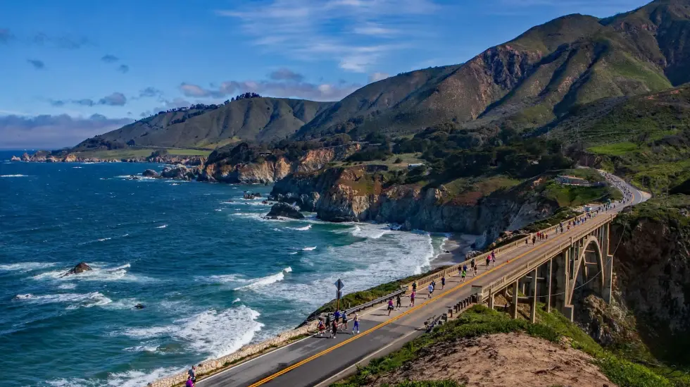 Con largada en la prístina Big Sur, el recorrido sigue la Carretera 1 hasta llegar a la pintoresca Carmel. Se trata de la maratón rural más grande del mundo y ofrece paisajes espectaculares en cada kilómetro: secuoyas imponentes, montañas escarpadas y olas que golpean con fuerza la costa. En el icónico Puente Bixby, justo a mitad de camino, Michael Martinez, conocido como el "Grand Piano Man", toca en vivo vestido de esmoquin para motivar a los corredores en los últimos 21 kilómetros de esta exigente carrera costera.